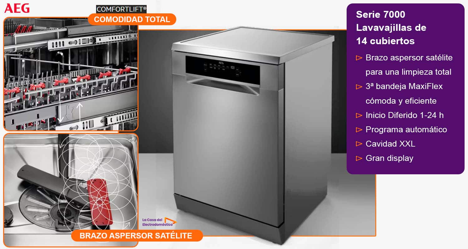Los mejores resultados posibles que encontrarás en el mercado los ha conseguido AEG con su brazo aspersor satélite. Este alcanza mucho mejor todos los rincones del lavavajillas, hasta 3 veces más de alcance que un brazo estándar. Su doble rotación consigue el agua llegue a todas partes y la limpieza sea increíblemente perfecta.
