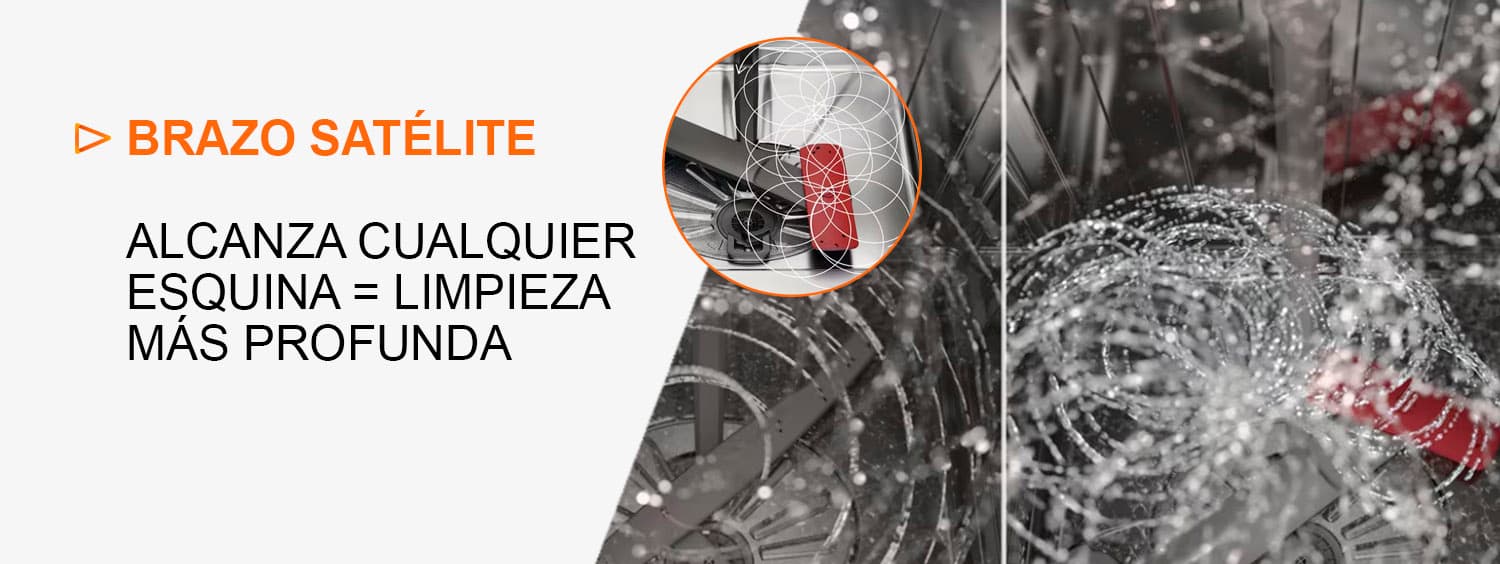 El exitoso brazo aspersor satélite de AEG consigue distribuir y empujar el agua de tal forma que alcanza todos y cada uno de los rincones. En concreto tiene un alcance hasta 3 veces mayor que cualquier otro diseño del mercado. ¿Qué consigue? Al llegar el agua hasta todos lados, la limpieza es muchísimo más profunda y exitosa. Lo notarás en cada lavado.