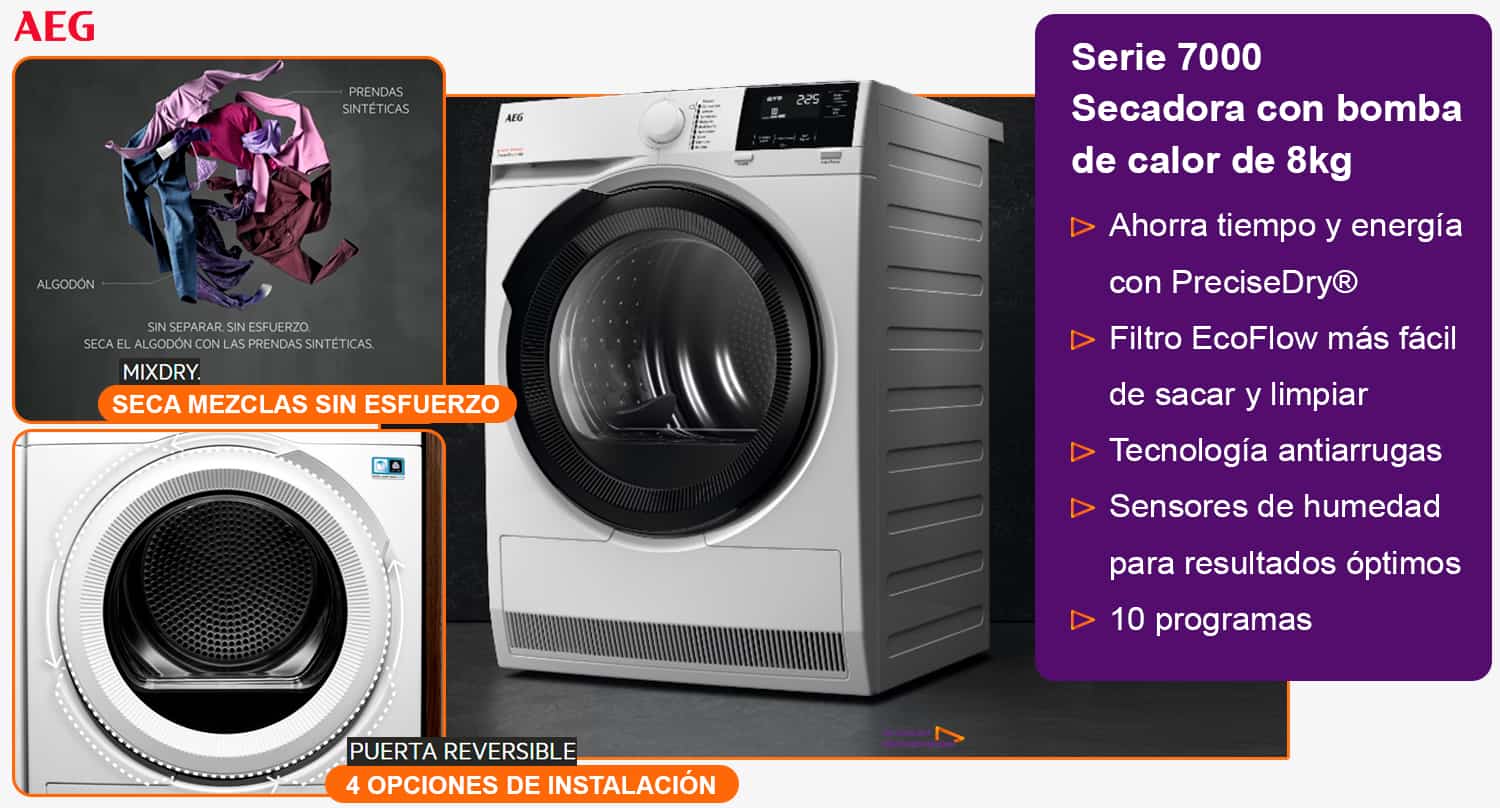 Alta eficiencia energética conseguida a base de la incorporación de las mejores tecnologías de secado del mercado. Consigue que tener una secadora en el hogar no suponga una inversión alta en cuanto a gasto energético y aumenta las posibilidades de secado personalizado a cada prenda o incluso a una carga mixta. Descubre sus ventajas y no la dejes escapar.