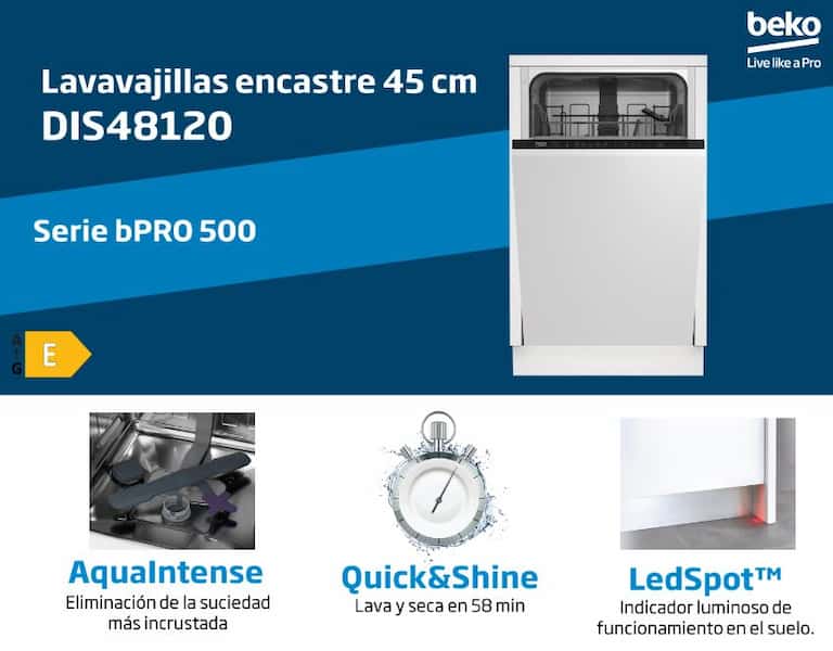 Beko DIS48120 - Lavavajillas Integrado 45 cm 3ªBandeja 11 cubiertos E