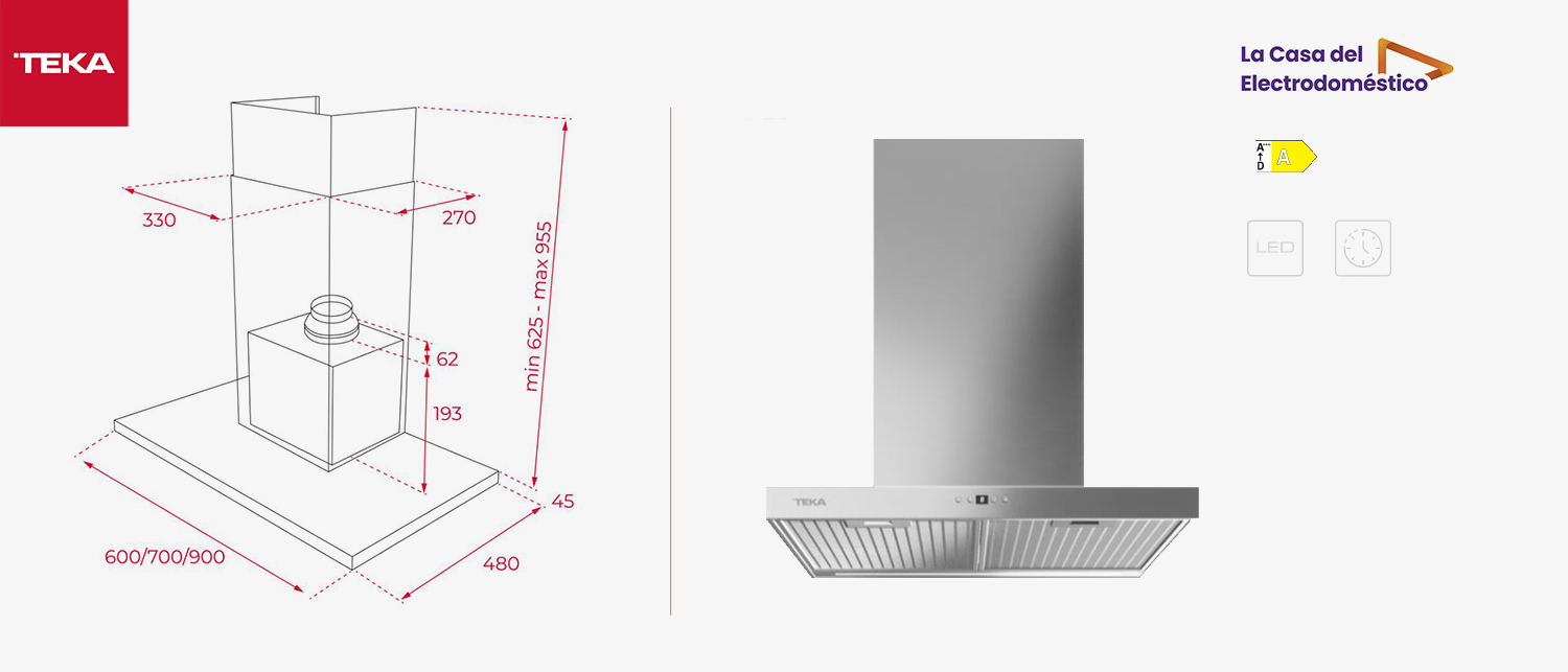 Teka DSH 686 - Campana Decorativa de Pared 60 Cm Inox Clase A1 / 5