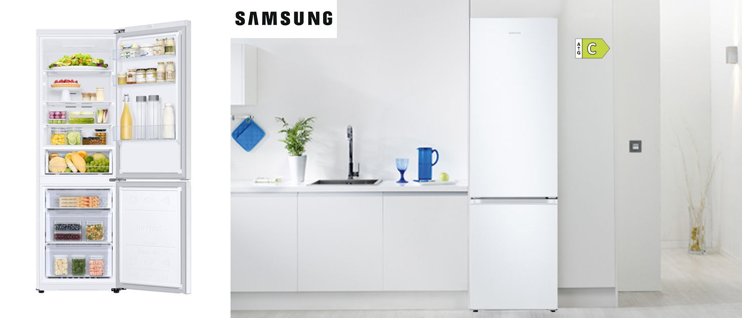 Conserva tus alimentos frescos hasta el doble de tiempo con el nuevo frigorífico combinado Samsung RB34C600CWW/EF.