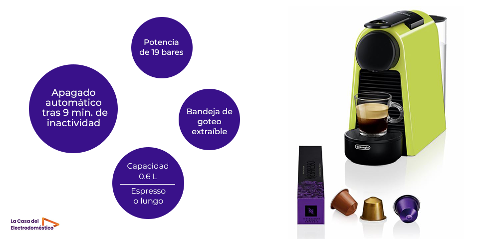 DeLonghi EN85L - Cafetera Nespresso Essenza Mini 19 BAR 0.6L Color Lima1 / 10