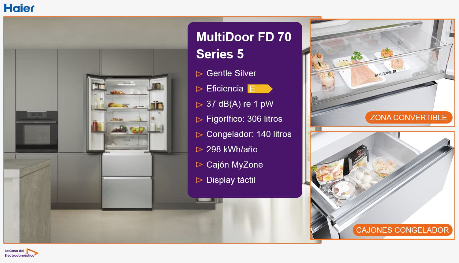 Dale a Haier la oportunidad de sorprenderte y convencerte de por qué elegir este frigorífico para tu hogar era la mejor opción. Porque su especial manera de fabricar frigoríficos le ha convertido en sello distintivo de la comodidad, la eficiencia y el cuidado para todo tipo de alimentos.