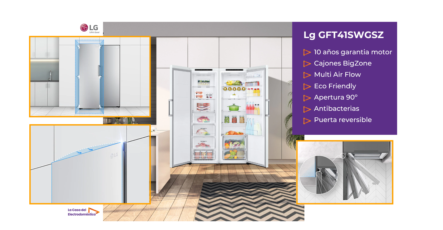 Olvídate para siempre de descongelar manualmente tu congelador para quitar la escarcha, la tecnología Total No Frost de LG evita la acumulación de hielo en las paredes del interior, evitando la descongelación manual y ahorrándote tiempo.