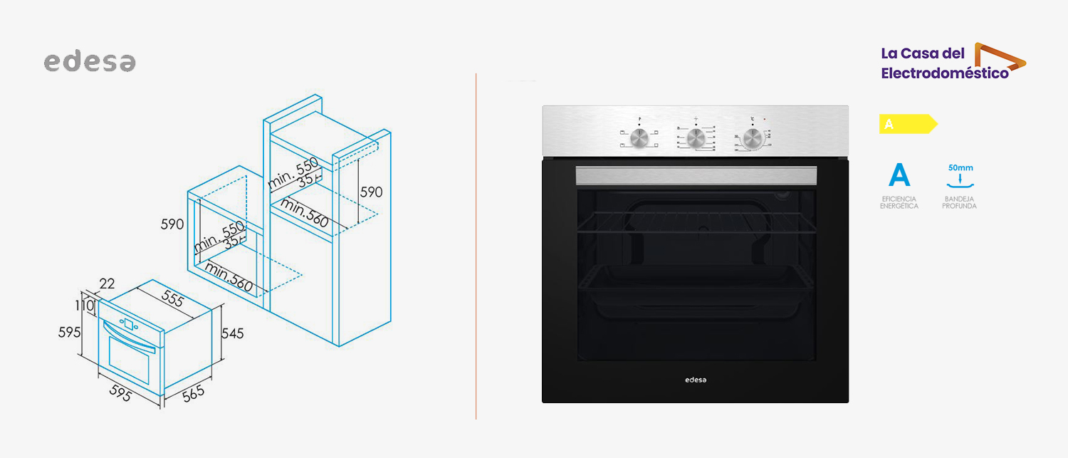 Edesa EOE-5020 XA - Horno Multifunción 66 Litros Clase A Inox/Negro1 / 2