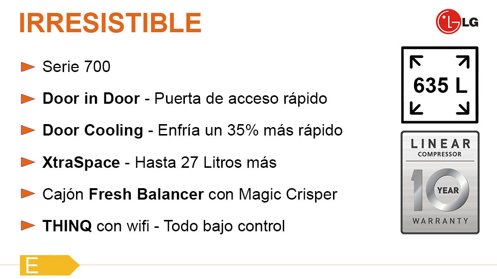 La nueva Serie 700 de LG viene cargada de la calidad y elegancia a la que nos tienen acostumbrados. Llévate a tu hogar la confianza de un fabricante con mejoras óptimas en conservación, durabilidad y espacio extra.