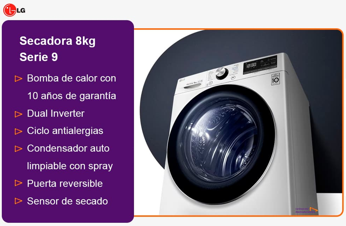 LG RH80V9AV4N - Secadora con bomba de calor Clase C de 8kg Serie 9