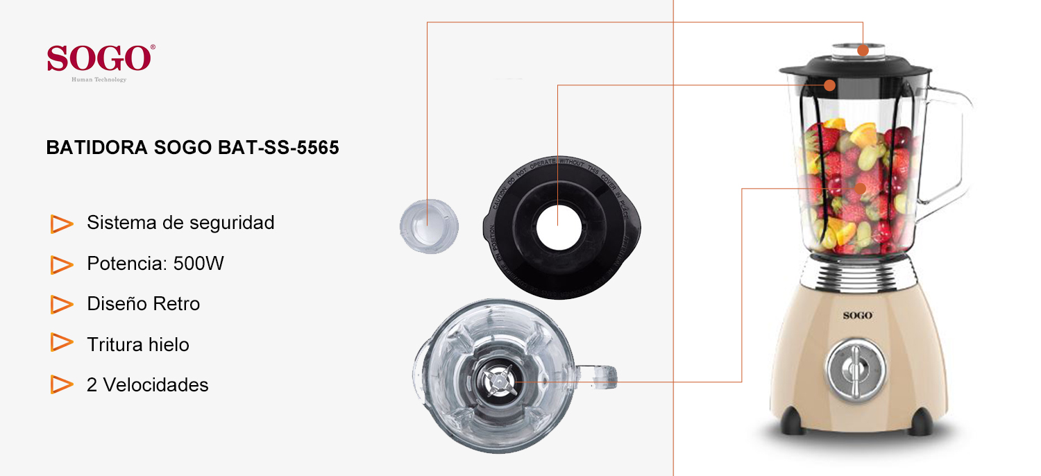 ¿Buscas la batidora perfecta para tu cocina? La batidora de vaso Sogo BAT-SS-5565 será tu compañera ideal para triturar cualquier tipo de alimentos y... ¡hasta hielo!