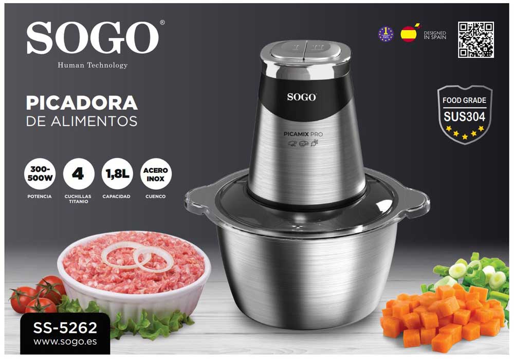 Sogo PIC-SS-5262 - Picadora de Alimentos 500W 1.8 L Acero Inoxidable