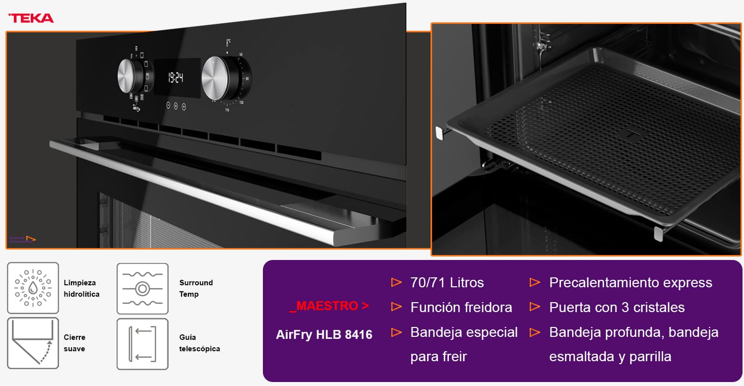 Si estás buscando un horno para tu nueva cocina o para sustituir el viejo, párate a valorar esta maravillosa opción. Porque, si además aún no disfrutas de una freidora de aire en tu hogar, quizá sea el momento de dar el salto a dos ventajas en un solo electrodocoméstico. Ahorra espacio, energía y ensucia menos cada vez que quieras freir algo.