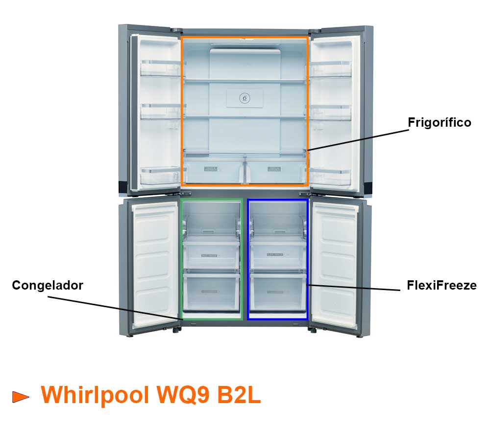 Whirlpool WQ9 B2L - Frigorífico Americano 187.4x90.9 cm Clase E Inox